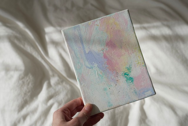 穏やかな色合いが 心に柔らかな風を通します◎ 上下どちらを上に 飾っていただいても構いません キラキラの金色を振りかけています (下の動画参照) キャンバスサイズ 18×14センチ