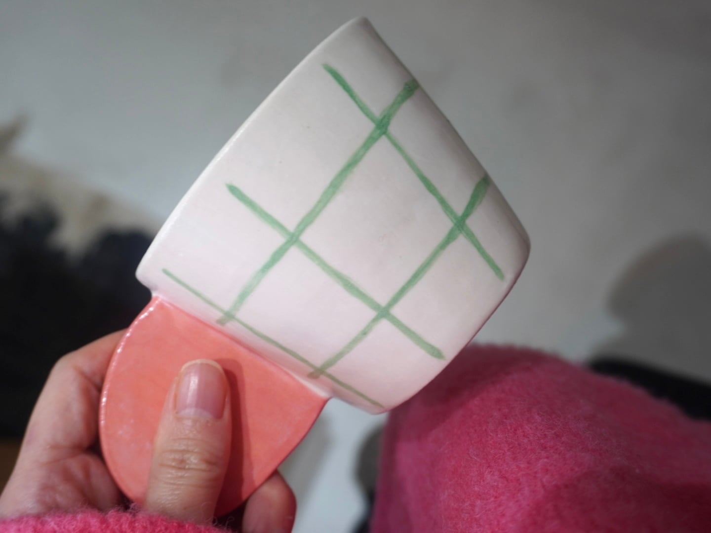 ミントグリーンチェック×ピンクMUG